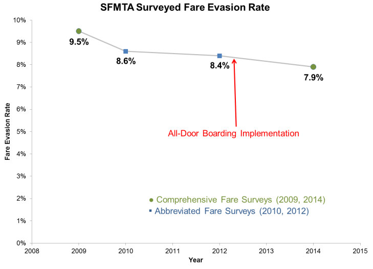 And when San Francisco switched to systemwide all-door boarding in 2012, there was no increase in fare evasion: