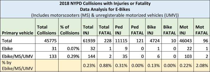 Now we know why Mayor de Blasio has never provided statistics to back up his contention that e-bikes are so dangerous that they must be confiscated from poor delivery workers: the data simply do not confirm his anecdotal fear-mongering.