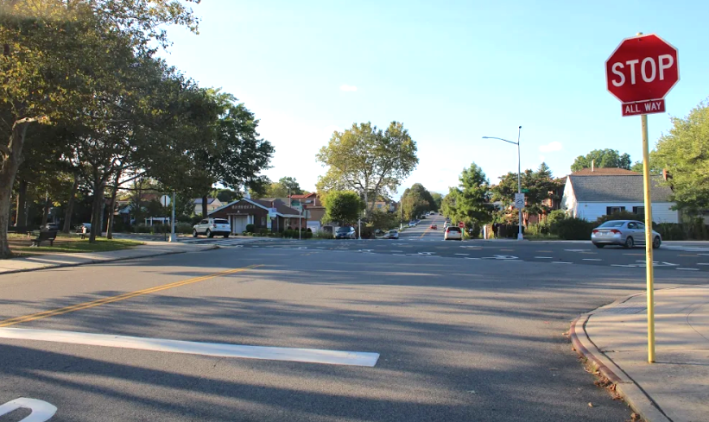 From 2016 onward, Eastern Queens Greenway made no fewer than five official requests for safety improvements to the intersection, where a five-way stop sign meets sharrows and an unprotected bike lane. DOT rejected two of those improvements, while three are pending: