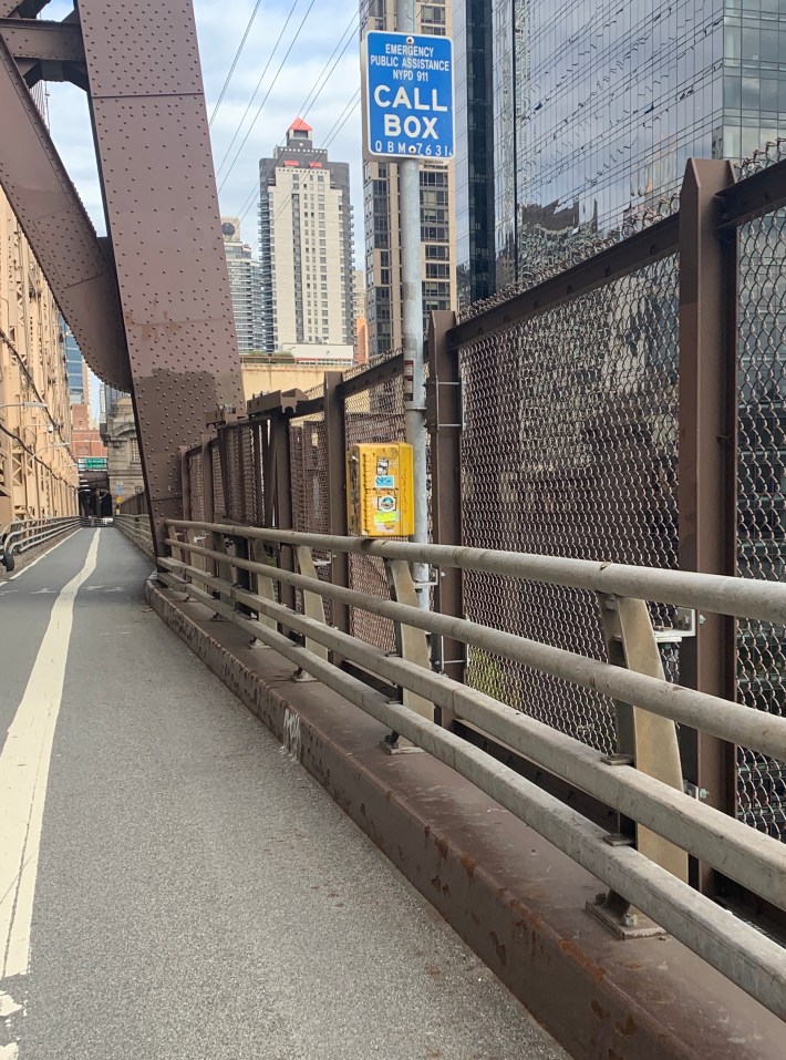 The Department of Transportation told Streetsblog last week that an eight-foot-high security fence would be a “multi-million-dollar” project because it would need to be 1.3 miles long and “would need to be attached securely to an old and landmarked structure.”