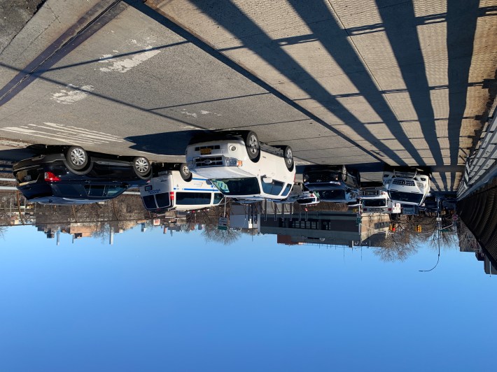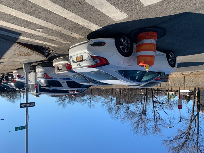 You gotta hand it to the cops at the 50th Avenue station house: There is not a nook, cranny, sidewalk or illegal parking space that they won’t repurpose for the storage of their squad cars or their personal vehicles.