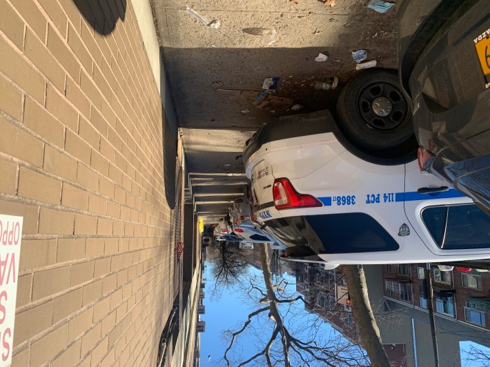 On the day of this Western Queens contest, the precinct block itself was surprisingly quiet, and NYPD-placarded cars even left enough room on the sidewalk for a kid and his dad to walk side-by-side, so perhaps Captain Wise, who took over the 114 in December, 2020, is not the Parking Madness gamer we thought she was.