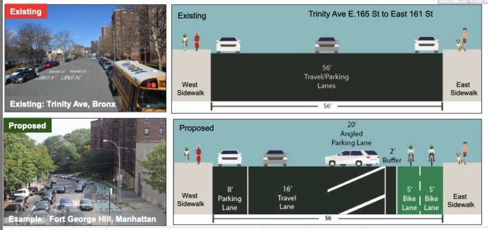 Here’s a before-and-after (from Trinity Avenue) that shows what DOT is trying to accomplish: