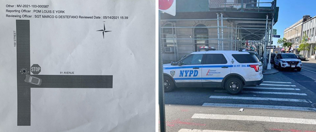 “I work right around the corner from the 103rd Precinct. There’s a crosswalk there, but there’s always police cars parked in it,” said Burke. “I got hit.”