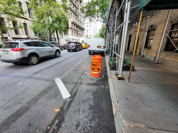 The Department of Transportation installed the temporary lanes in 2020 as an emergency measure order to accommodate rising numbers of cyclists, especially many delivery cyclists and frontline workers commuting to and from East Side hospitals. Then, the safety of this brave contingent that was keeping New Yorkers alive and fed was paramount. The DOT began the installation of the permanent lanes in late June, when it scrubbed the temporary lanes in advance of repainting.
