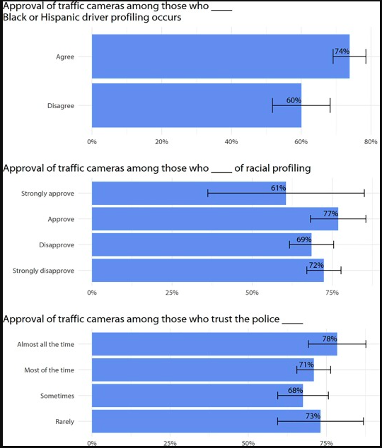 A control group, which consisted of roughly half the participants that were randomly selected, was asked the question in a way that merely introduced traffic cameras without the context of racial bias.