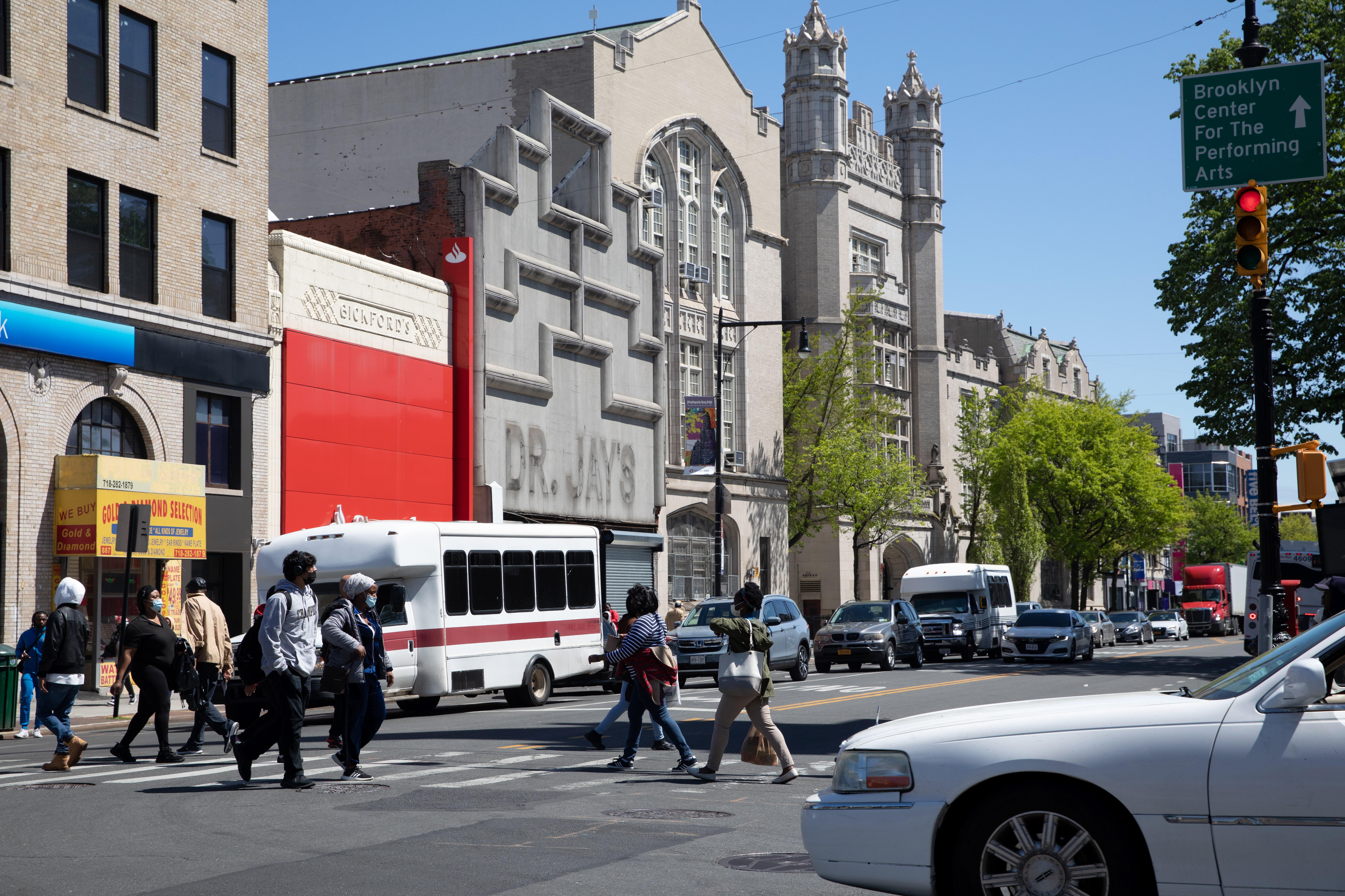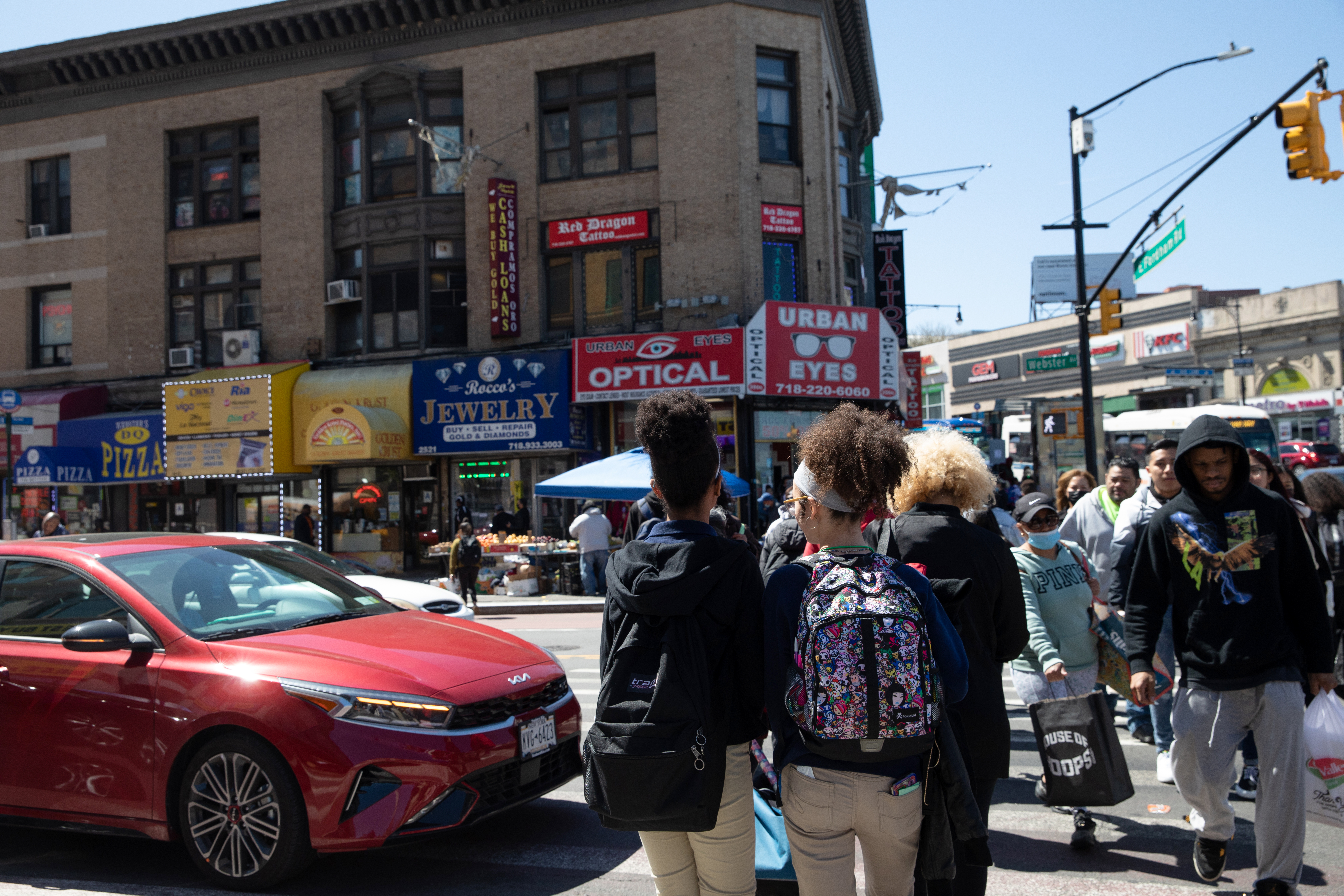 Nowhere were the consequences of such conditions more apparent than outside five city-run high schools on the Erasmus Hall campus in Flatbush, Brooklyn. Nearly 2,000 children studied there last year, more than three quarters of them poor and nearly all of them brown or Black. On one recent afternoon, masses of kids spilled out onto Flatbush Avenue after class, some walking in the street to avoid the crowded sidewalk. They walked next to drivers fighting through a thicket of cars at the intersection of Flatbush and Church avenues. Some drivers swerved into oncoming traffic to cut ahead. Others sat parked in bus stops staring at their phones.