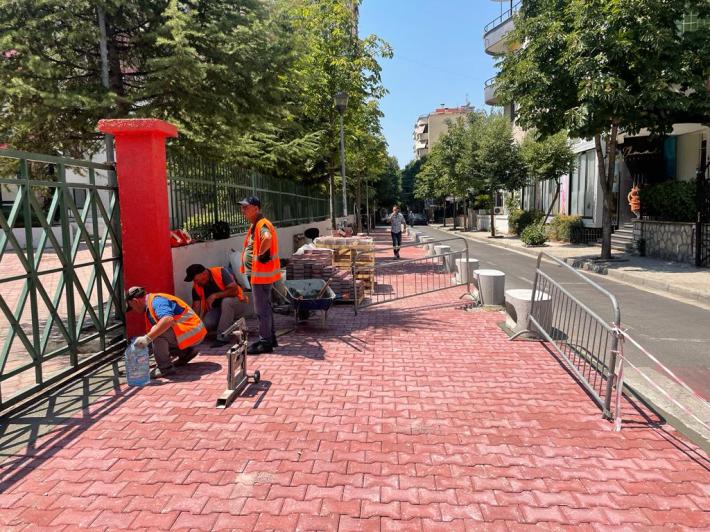 No surprise then that school streets are an emerging focus, although Tirana has taken a different approach to designing them than London or Paris. The city typically keeps one lane of traffic on school streets open, but it permanently converts the rest of the roadway to pedestrian space with bollards, paint, pavings, seats and lights. The interventions are low-budget, some costing as little as €1,500 for materials, with the conversions completed by city workers.