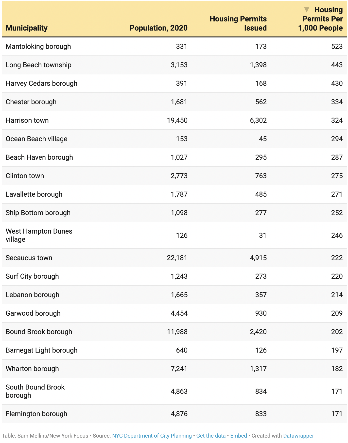 From 2010 to 2021, the New York suburbs issued 70,000 housing permits, or 13 for every 1,000 residents — about half the rate of New York City, and just a third that of the New Jersey suburbs.