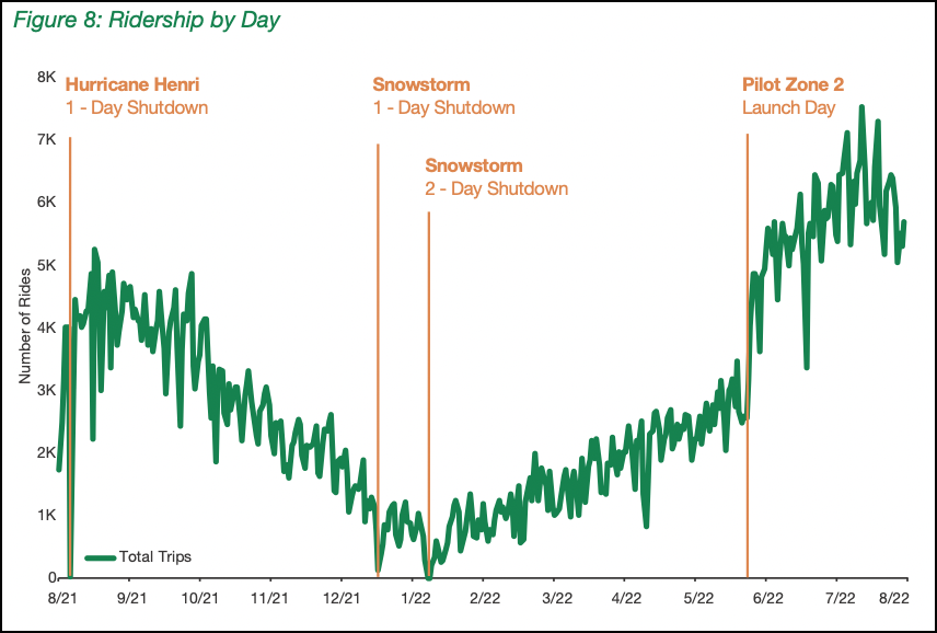 But ridership is promising, with trips averaging roughly 10 minutes:
