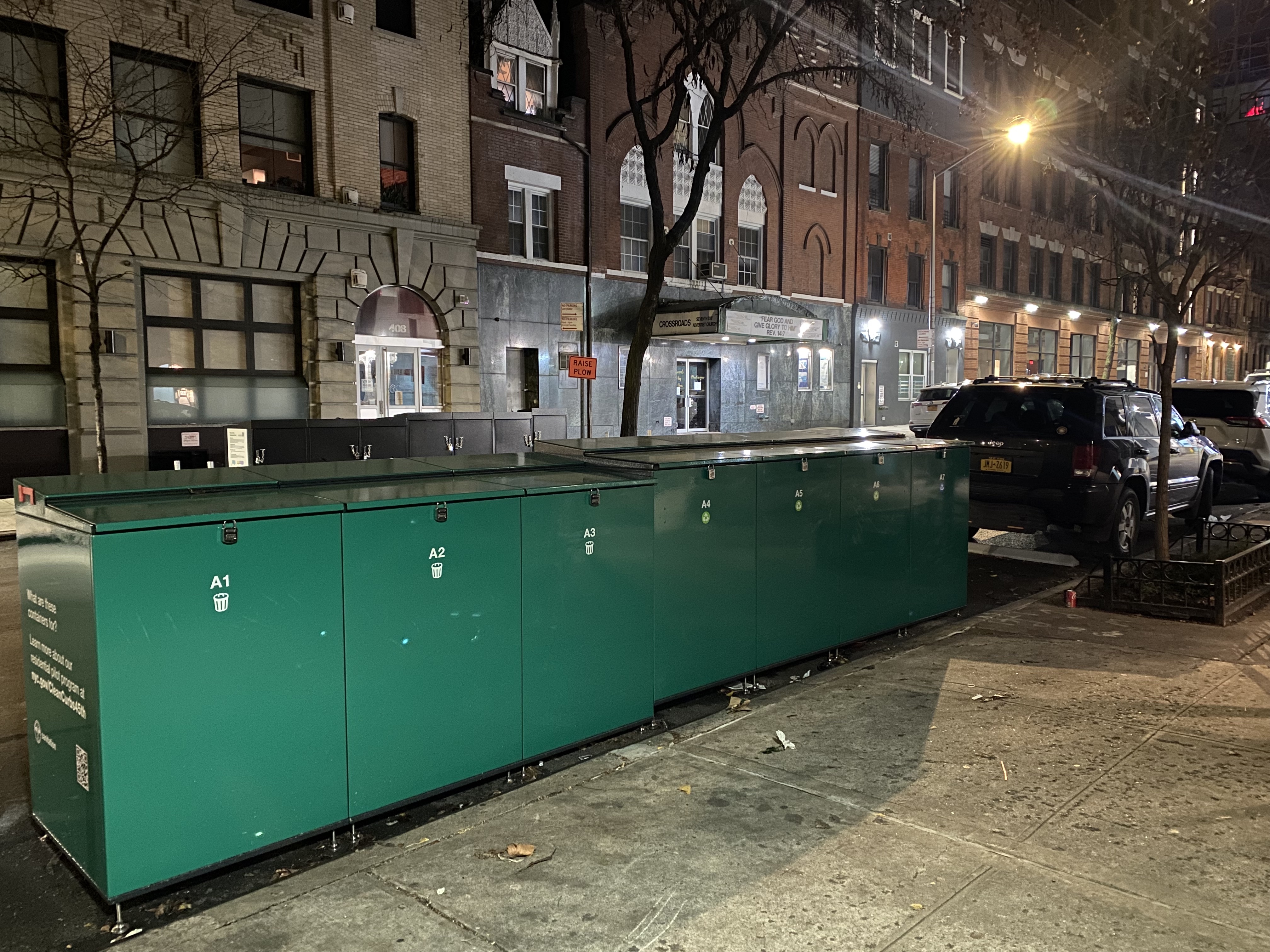Brooklyn-based company CITIBIN makes the steel containers and began setting them up in the last weeks along W. 45th. The firm’s chief said she’ll be working with DSNY on each minute detail, like which type of lock works best without adding too much time.