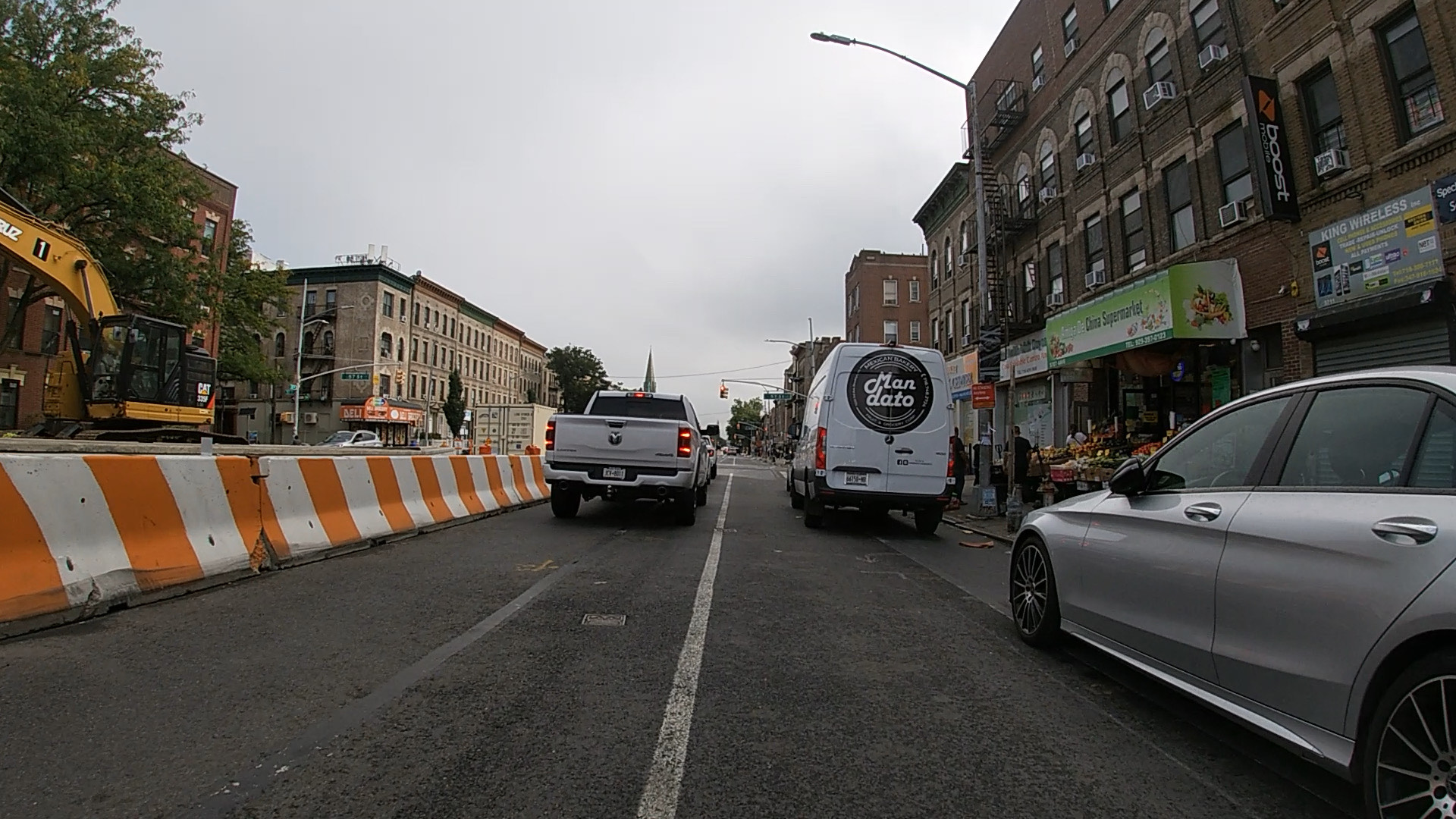The roadway already has a much-loved protected bike lane on both sides, but in October, the city broke ground on a $60-million “Great Streets” project to landscape the subway grates in the median, plus add hardened pedestrian refuge areas and benches between Atlantic Avenue and 64th Street (nothing good ever makes it to Bay Ridge!). But in order to accommodate the work, the city eliminated portions of the parking-protected bike lane on a rolling basis between Eighth and 64th streets, turning it into a lane for drivers, and throwing cyclists into danger.