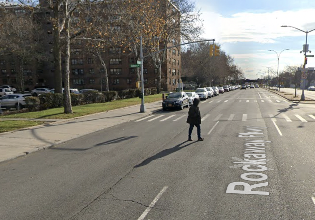 In 2022, there were eight reported crashes on just the two blocks of 68th Street near the park, injuring a pedestrian, according to city stats. And on the one long block south of Seaview Avenue, there were 78 reported crashes last year, injuring a whopping 18 pedestrians. Even the Google image of that stretch of Rockaway Parkway shows a pedestrian at risk: