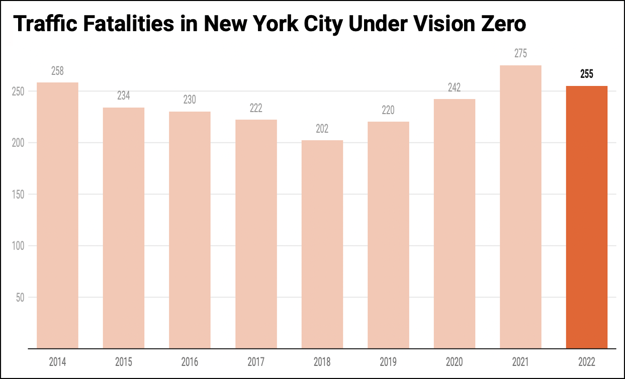 “As we near the 10-year mark of Vision Zero, it’s clear we haven’t moved fast enough to address this crisis,” Danny Harris, executive director of Transportation Alternatives, said in a statement.