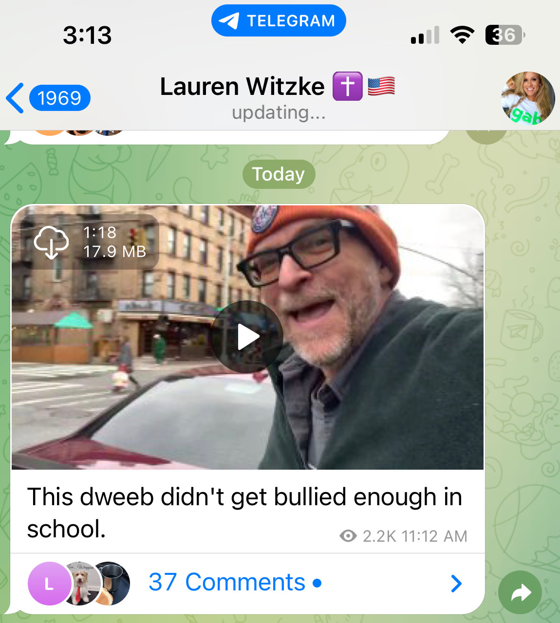 And everything was going fairly well. Until this week, when right-wing influencer and QAnon adherent Lauren Witzke posted on Telegram that I was a dweeb (guilty as charged) who should be bullied for what I’m doing (wait, wut now?).