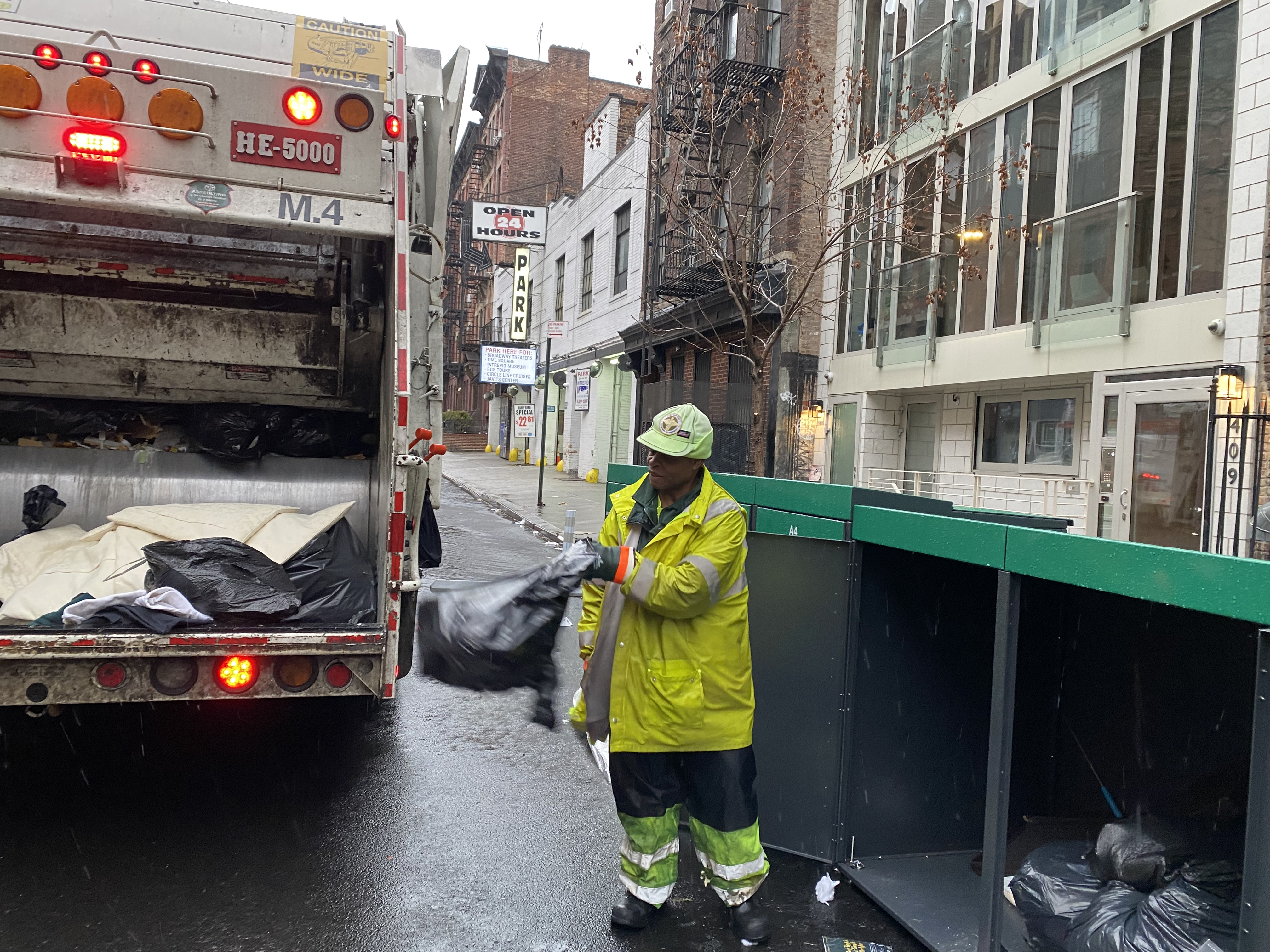 It takes the city’s waste haulers about twice as long to cover the containerized block — due to workers having to open and close the boxes — compared to other streets where they can just take the bags from the curb, collectors told Streetsblog during a recent run, but locals cheered a sidewalk free from the Big Apple’s notorious five o’clock shadow.