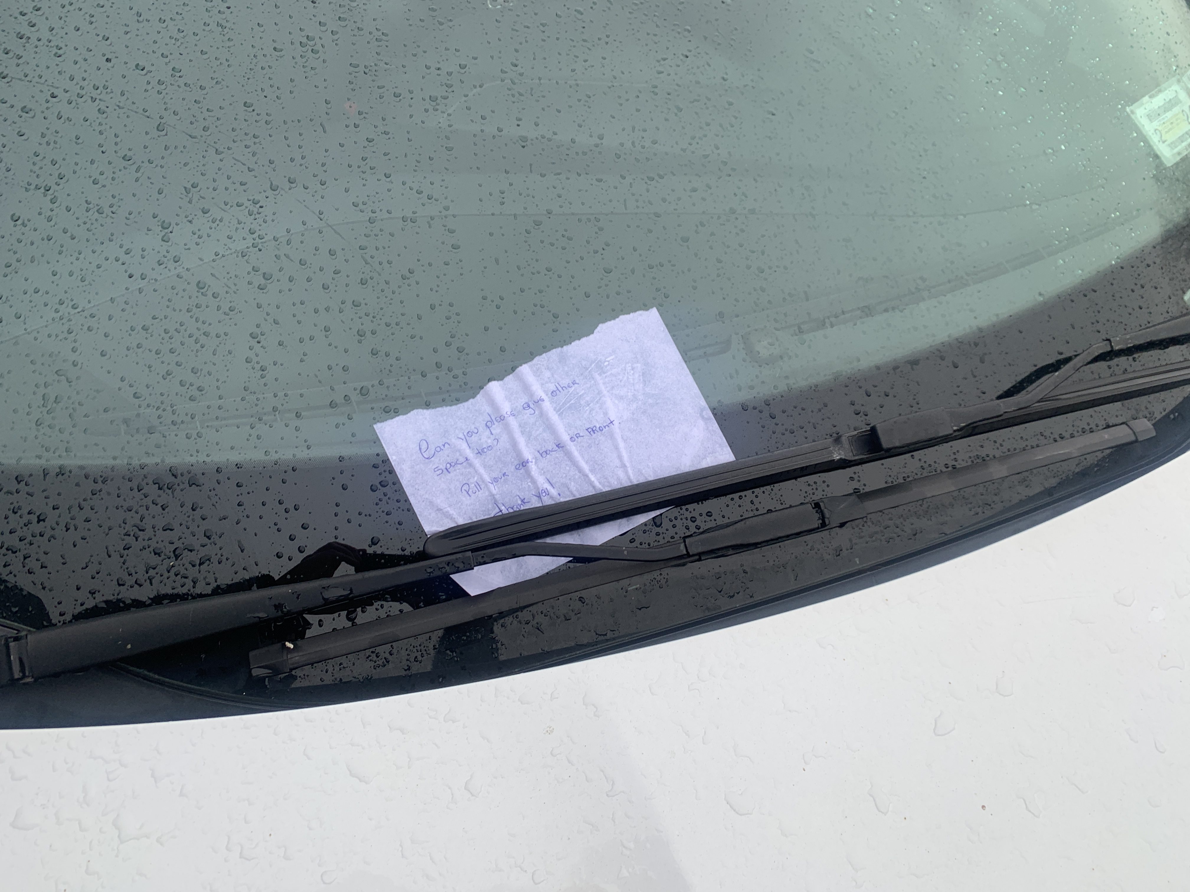 Indeed, when drivers don’t fill the legal space left by the city, they get notes on their cars: