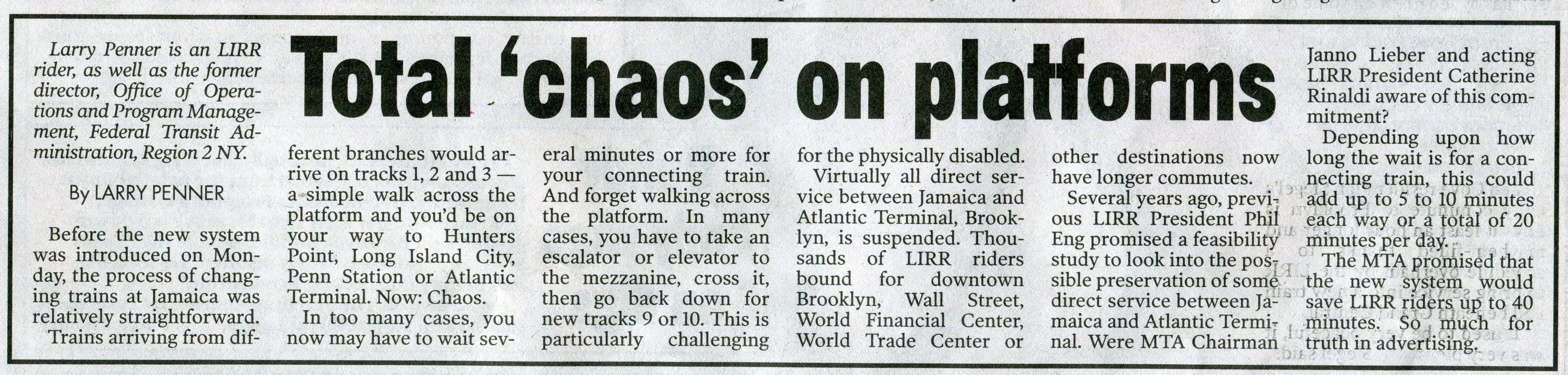 Let us take a moment to praise the prolific former federal transit with the supremely appropriate last name. Larry Penner recently has been en fuego with his insights into the Long Island Rail Road’s East Side Access (aka Grand Central Madison) coverage, including: