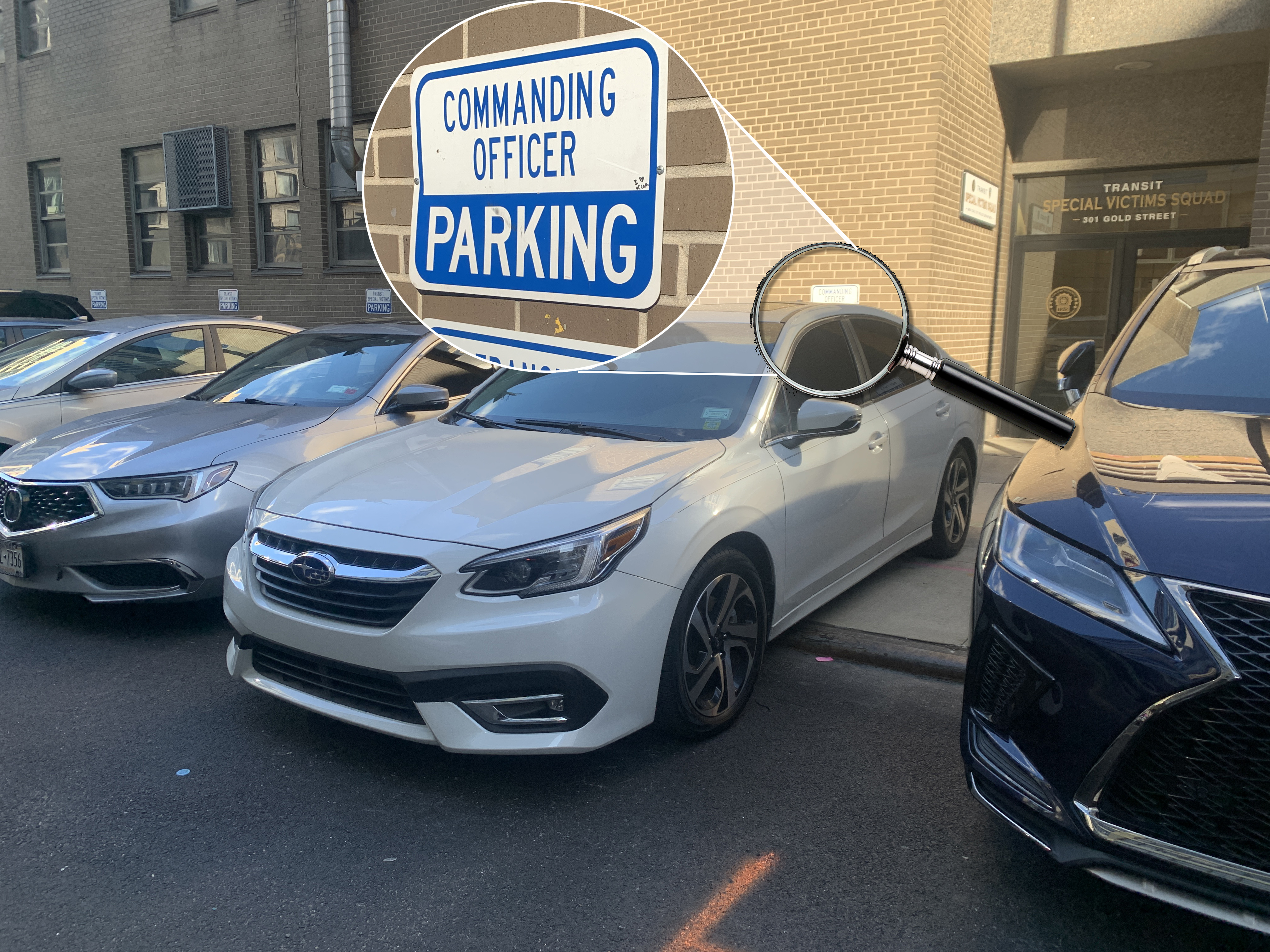 And not only the side streets are choked with these officers’ cars — they park on the exit and entrance ramps of the Brooklyn-Queens Expressway, on the median of Tillary Street, and on any grassy area they can find. They even steal parking from NYCHA residents. Here’s a slideshow of that, just to whet your appetite: