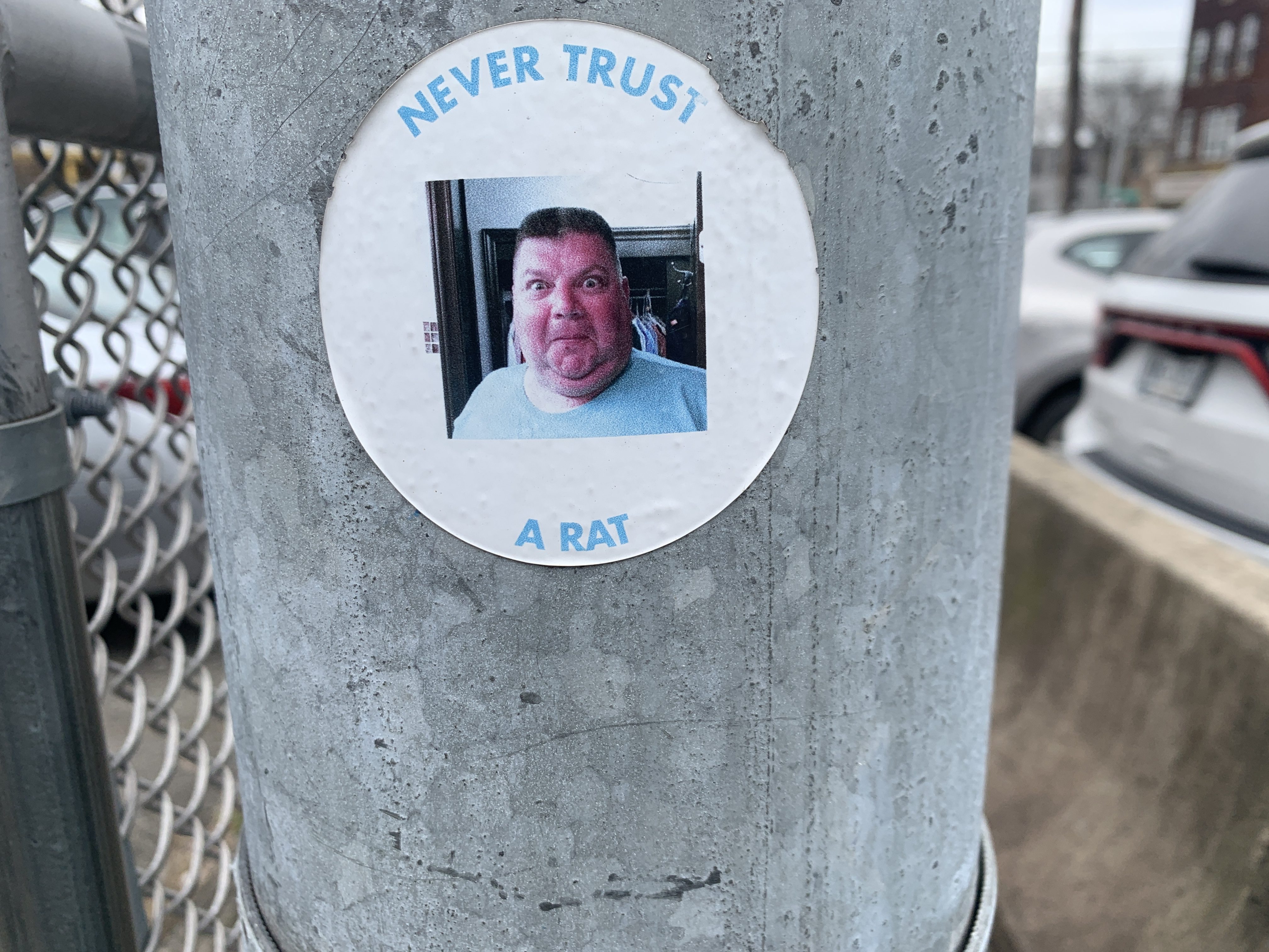 Let’s start with something you don’t see very often: the officers at the 75th Precinct in East New York apparently don’t even like each other. How else can you explain this sticker, which is on poles all over the areas where cops park their personal vehicles: