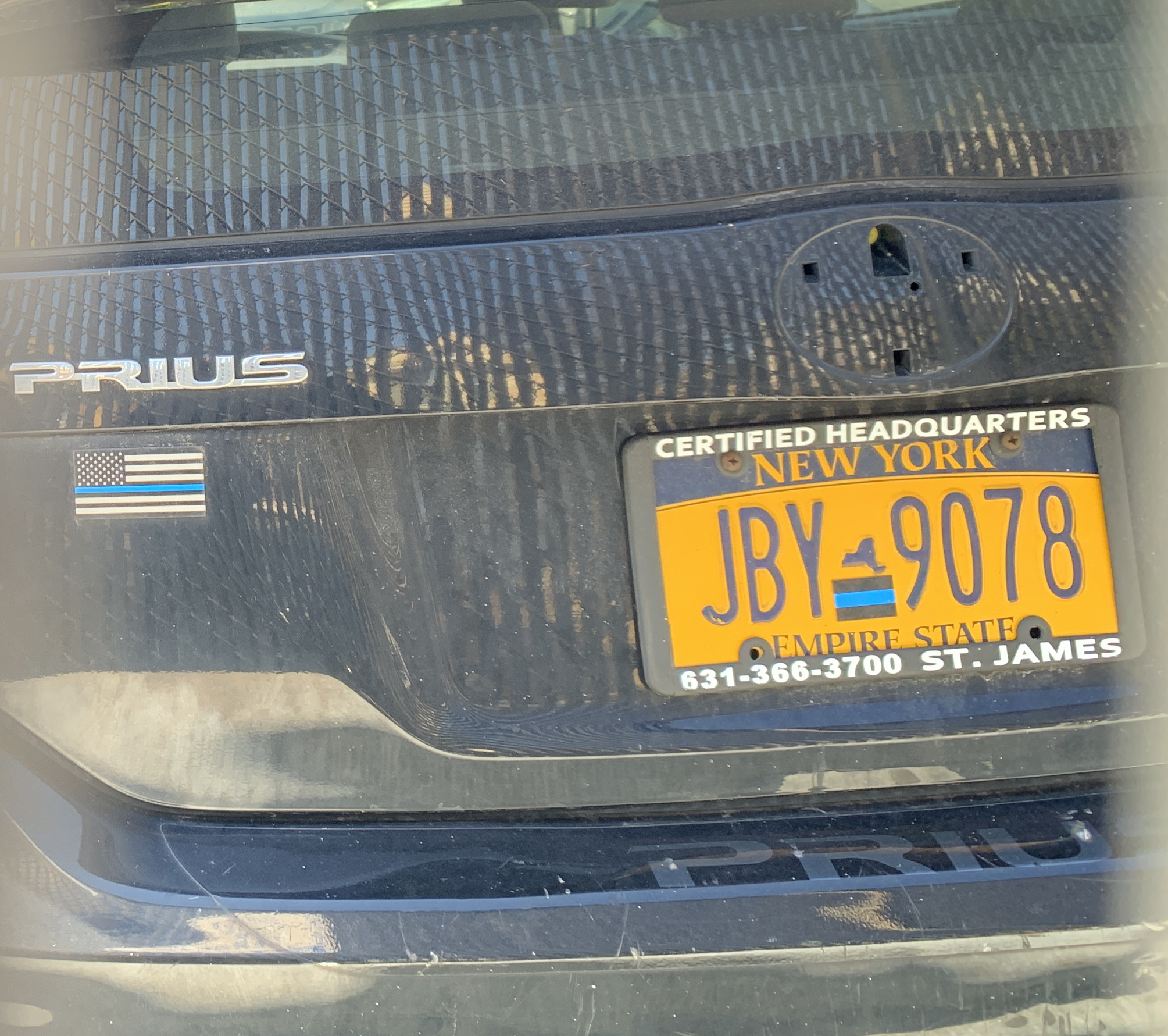 And what about this guy, who parks in the station house parking lot with the thin-blue-line stickers … and the five speeding tickets (law and order for everyone but himself, right?)