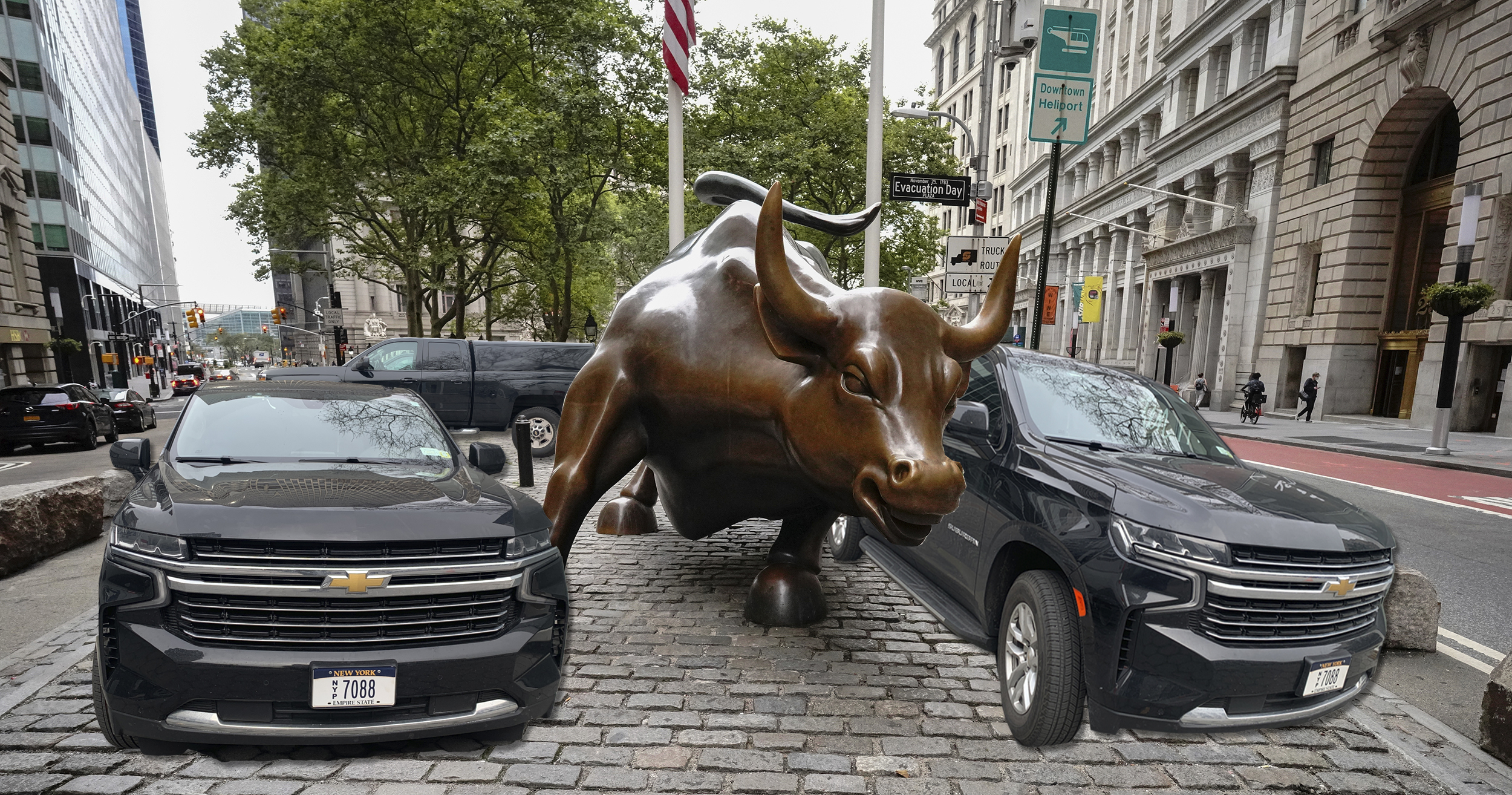 The Parks Department declined to respond to specific questions about why it even allows drivers to park on the plaza. As such, I decided to imagine what other important New York City landmarks and memorials would look like once car drivers got the idea that they were welcome to store their vehicles there. For instance: