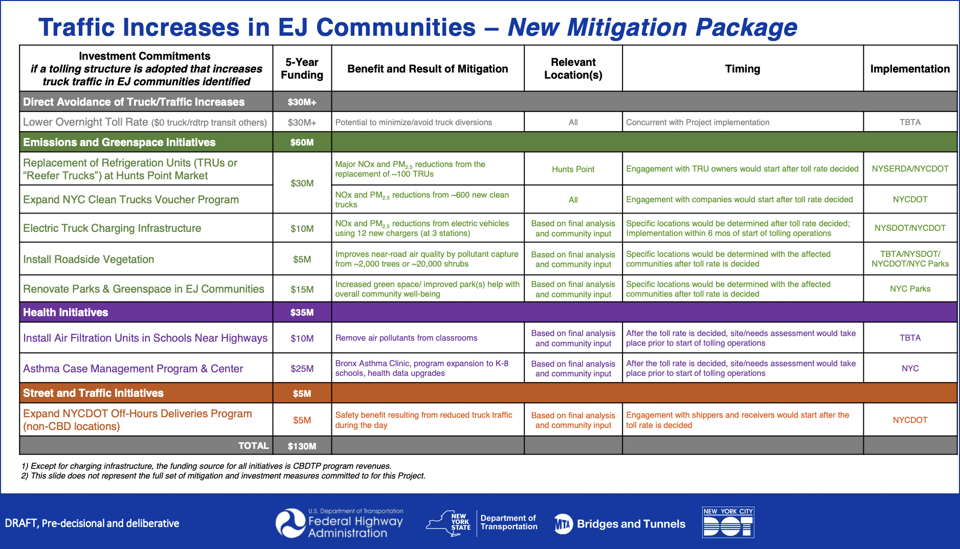 - Add electric truck charing infrastructure in locations to be determined ($10 million, which is the only part of the package that will not be funded with congestion pricing money).