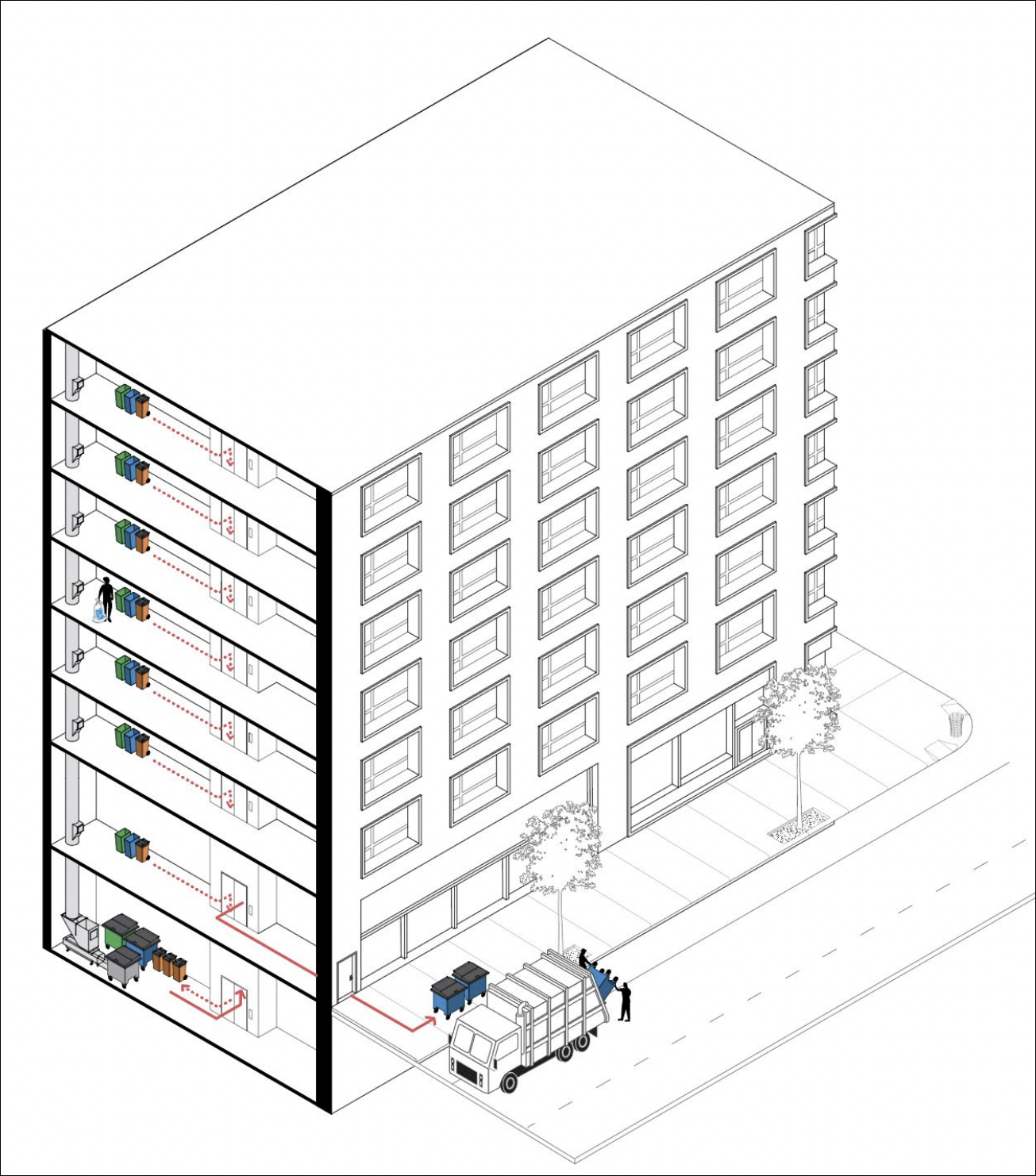 The open street’s one high rise, a 17-story apartment building between Dean and Pacific Streets, produces too much trash to hold in stationary containers for several days.
