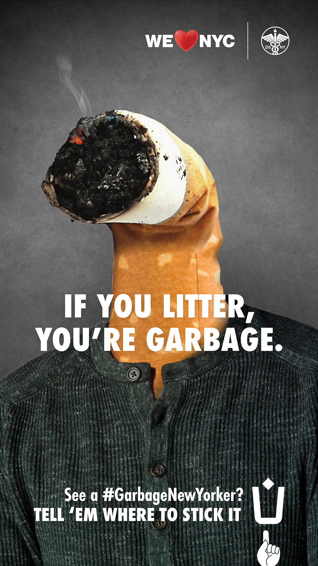 Another campaign shows New Yorkers as garbageheads, and features the cutline, “If you litter, you’re garbage.” That campaign also asks residents to confront their noxious neighbors and “tell them where to stick it.” (See photo right.)