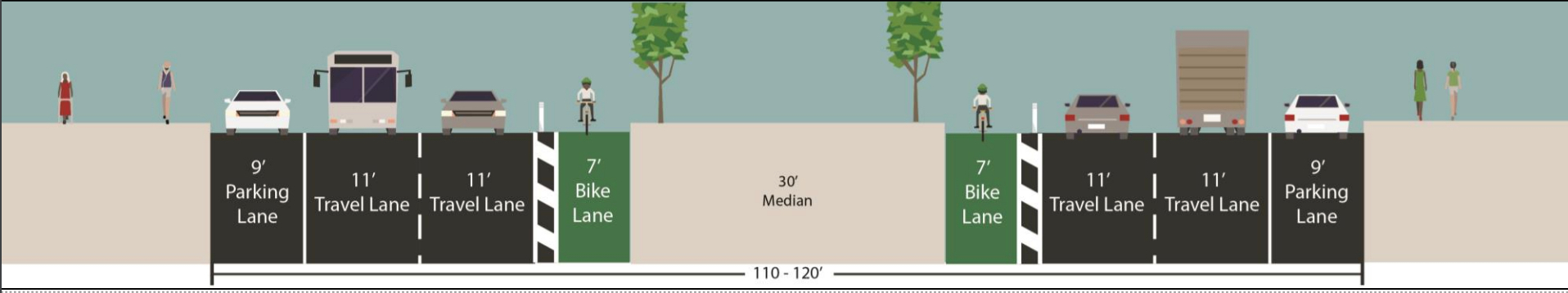 The thoroughfare currently has 40-foot-wide roads on each side of the median with three lanes in each direction and large open intersections, encouraging drivers to routinely speed and make dangerous turns, according to DOT.