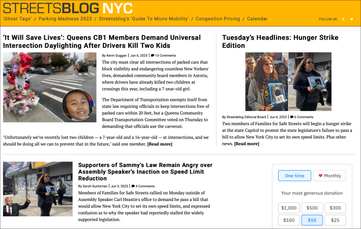 First, try to remember the ancient history of just yesterday, when Streetsblog’s homepage looked like this: