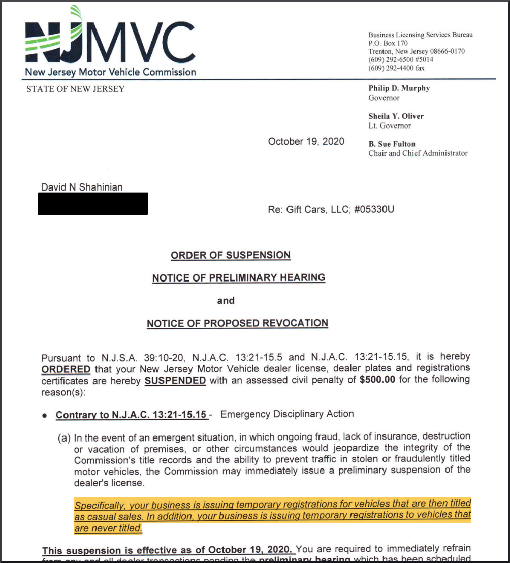 That leap in car sales was not what it seemed. The commission caught the Shahinians fraudulently issuing temps, according to an October 2020 letter from the commission obtained through a records request. And Nazareth, in an interview with Streetsblog in December, admitted Gift Cars had been selling tags illegally. (It’s illegal for a dealership to issue a temp tag to someone without selling or leasing them a car.)