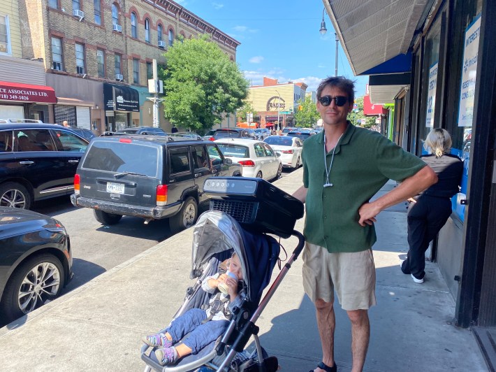 “I hate it, I really hate this boulevard,” said Sol Gille as he pushed his 17-month-old son Siah in a stroller after crossing McGuinness. He said he didn’t mind if drivers are inconvenienced — though road diets are not synonymous with increased traffic, despite what non-traffic engineers believe.