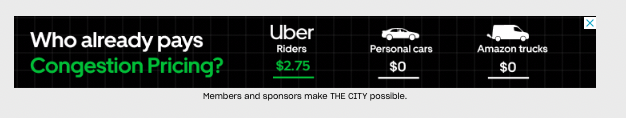 And despite the fact that $2.50 surcharge on taxi trips south of 96th Street and $2.75 surcharge on FHV trips south of 96th was pitched as a “first step” for congestion pricing, and Uber has been running ads claiming their customers pay congestion pricing charges, the surcharge technically exists as a separate law from the congestion program that the federal government has weighed in on.