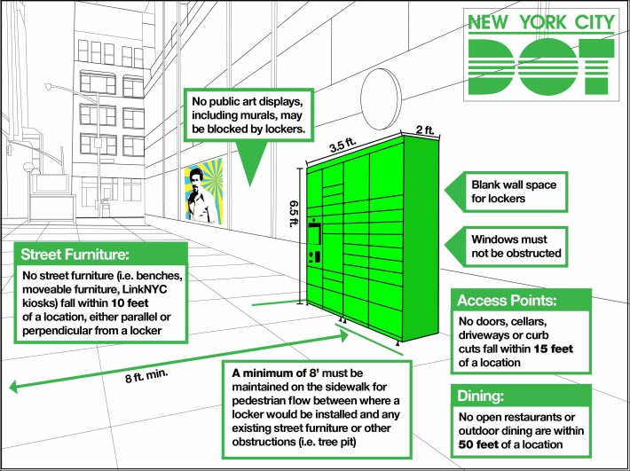 “As the number of at-home deliveries have surged in recent years, so have the number of large delivery trucks on our city streets,” DOT Commissioner Ydanis Rodriguez said in a statement. “The LockerNYC initiative will help reduce the number of trips delivery trucks make each day while also providing a secure place for New Yorkers to receive packages.”