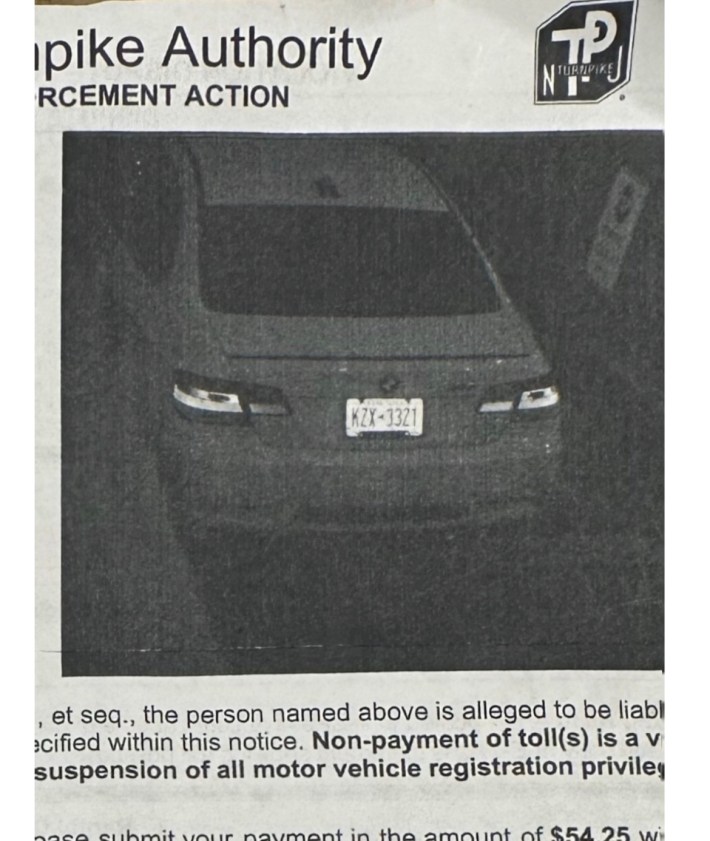 Eventually Roses got a ticket from the New Jersey Turnpike Authority for non-payment of a toll, and when he saw a car with his exact license plate he sought some answers from the DMV.