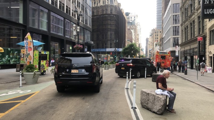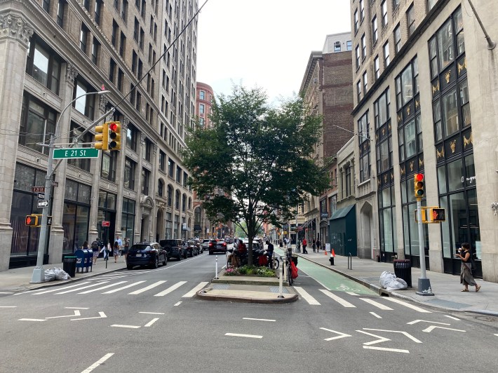 The stretch slated for the next upgrade currently has a southbound parking-protected bike lane between 21st and 18th streets, which devolves into an unprotected bike lane for the southernmost block connecting to Union Square.