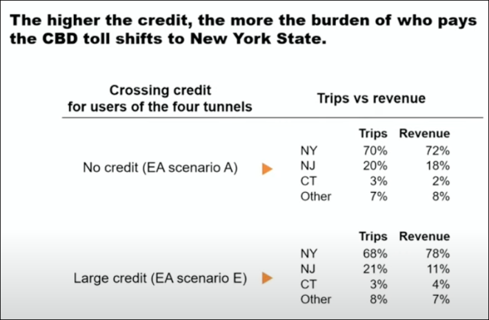 Considerations like these are why every prominent New York congestion pricing proponent has called on the TMRB to credit existing tolls on the four tunnel crossings to the congestion zone. “Gridlock” Sam Schwartz made tunnel credits a centerpiece of his Daily News editorial last week; so did the Congestion Pricing Now coalition comprising the Regional Plan Association, the Riders Alliance and dozens of allied organizations in their July letter to the TMRB.