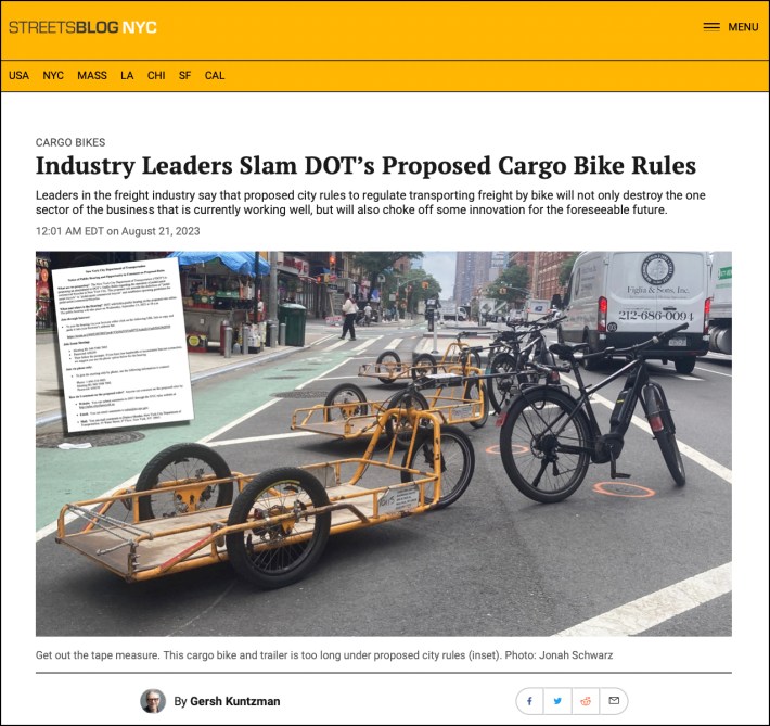 Earlier this month, we broke the news that the Department of Transportation wants to change the rules governing the size of cargo bikes used for freight. But that story missed a key detail about the rules, prompting a follow-up that was filled with concern from the freight bike industry that the new proposed rules could stifle innovation and choke off the existing, and successful, Amazon/Whole Foods delivery business, which comprises the vast majority of freight deliveries by bike today. After reading that article, another industry leader came forward to complain about the DOT proposal with an open letter to the agency. It is published below.