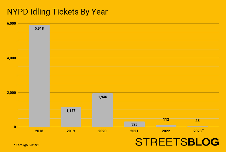 The 35 tickets so far this year puts the NYPD on pace for 52 total tickets in 2023. Compared to the nearly 6,000 tickets cops issued in 2018, that’s a 99.1-percent drop in just six years.