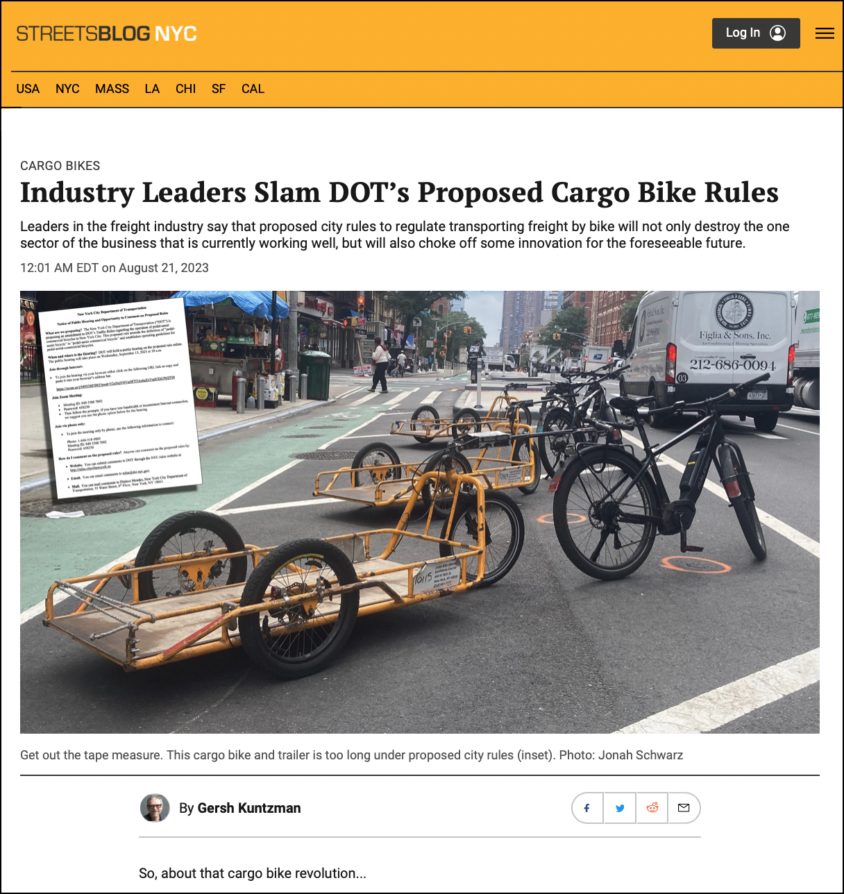 Cities across the country, large and small, are looking up to you, DOT. Embrace cargo bike logistics, support the riders who operate these bikes, and the public that interacts with them. Onerous rules and regulations don’t have future generations in mind. New York can set the precedent for freight delivery for the rest of the country as long as leaders are growth-minded and don’t get bogged down in rules.