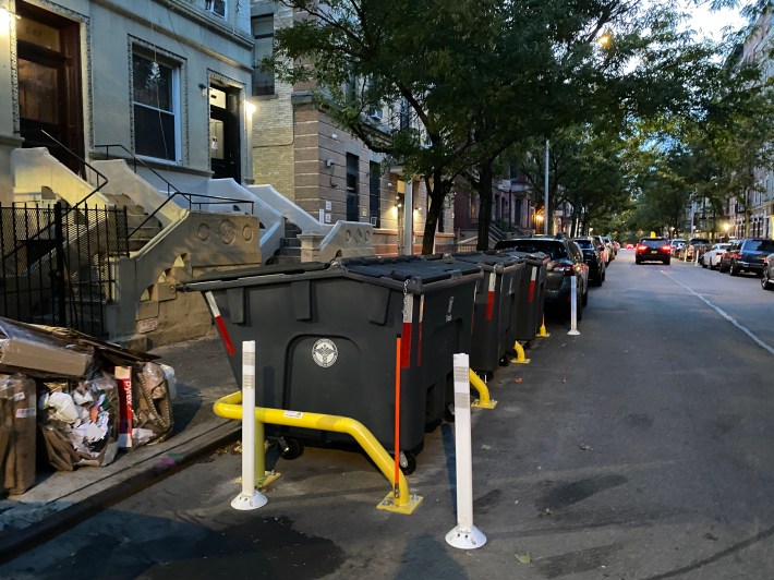 Officials started installing the curbside containers outside residences and schools in West Harlem over the summer. Sanitation plans to collect the enclosed trash from the 10 residential blocks from W. 143rd and W. 152nd streets, and between Amsterdam Avenue and Broadway, and outside 14 area schools this fall.