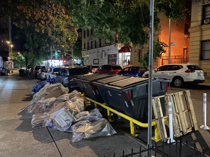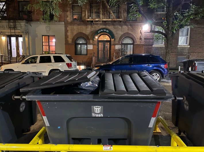 DSNY last year attempted a different pilot on one block of W. 45th Street in Hells Kitchen — but without automated lifts. Unlike in West Harlem, workers had to haul the bags in the midtown neighborhood one-by-one by hand. Those bins were also locked and only accessible to Sanitation workers and building supers, while the new ones are open.