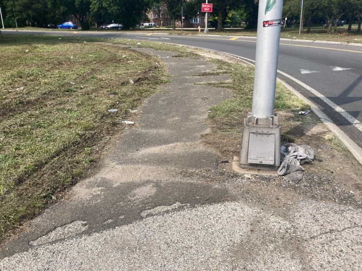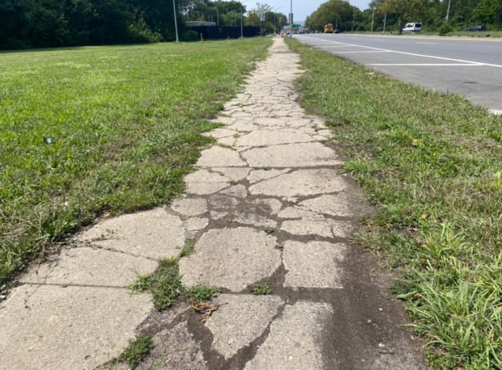 The sidewalk is cracked, overgrown, and had some especially harrowing bumps, giving it the look and feel of an afterthought at best.