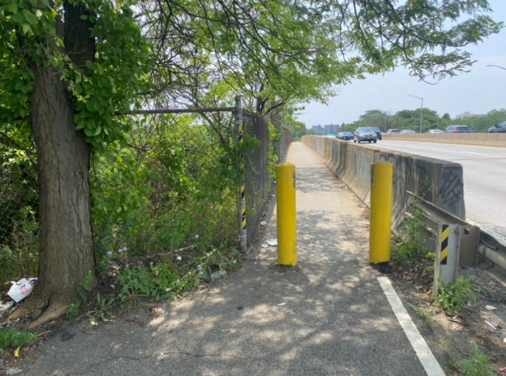 Parts of the path were too narrow two-way traffic either due to overgrown vegetation — a common issue on other greenways managed by the city’s Department of Transportation — or because of randomly-placed bollards at a bridge that made an already tight pinch point worse.