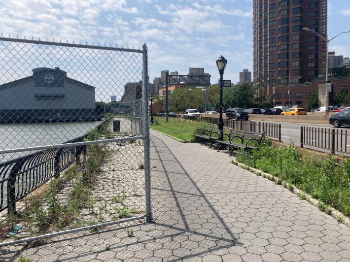 The bike path abruptly ends with a chain link fence north of 114th Street and you have to take a pedestrian bridge over FDR Drive to get out of the greenway.
