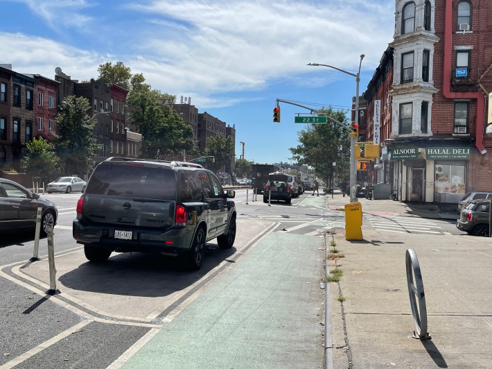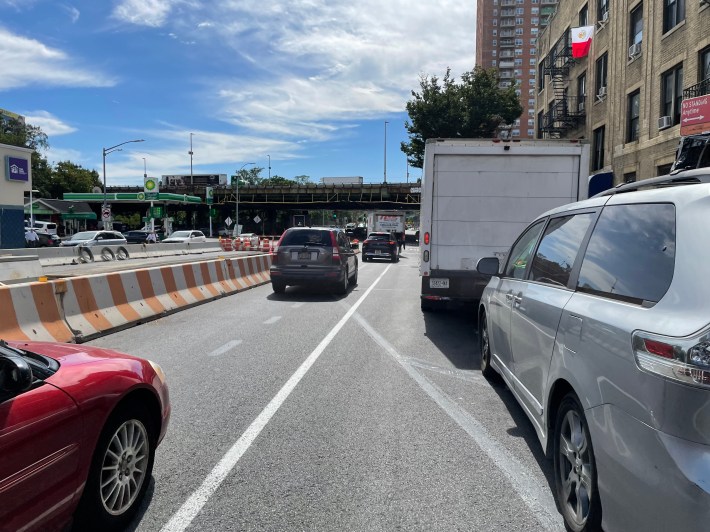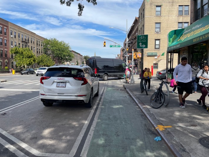 “During current construction to improve long-term safety and ongoing traffic calming measures, which we support, we have witnessed drivers illegally parking in the curbside travel lane in the construction zones, reducing travel lanes to only one, and dangerously forcing bicycles into the travel lane as well,” the letter states. “We urge DOT to work to ensure curb lanes be preserved for safe cyclist passage through the construction zones.” (Signatories of the letter say they have not received a response from DOT Commissioner Ydanis Rodriguez.)