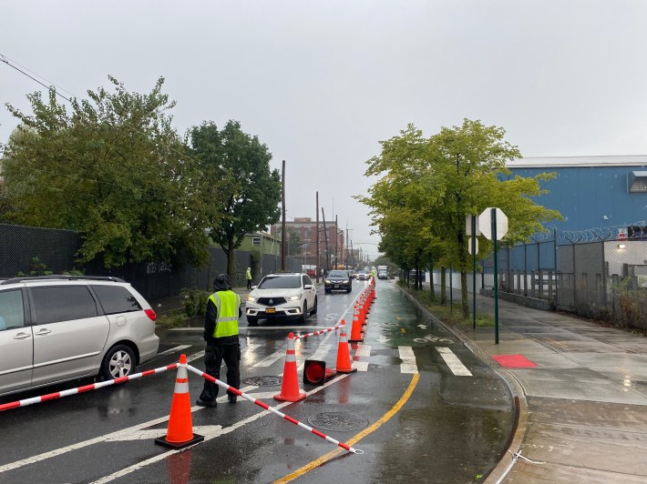 Cars frequently blocked the Brooklyn Waterfront Greenway by dropping off or picking up passengers at the corner of Conover and Pioneer Streets, prompting officials to set up orange cones in recent weeks to keep the paths clear.