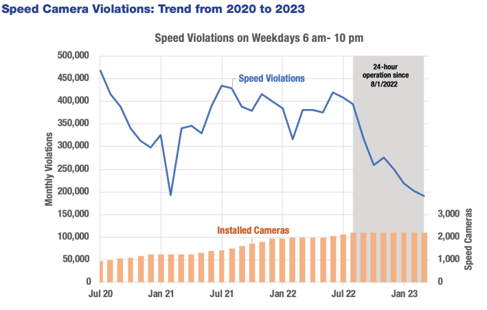 Indeed, camera violations have been dropping even as more cameras have been installed and their hours of operation have increased. That’s a function of how few drivers get a second ticket after the shock of getting the first one, the agency has said.