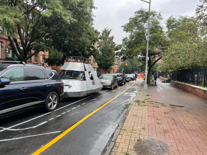 But Veconi said that in his text messages with Mayor Adams, Hizzoner told Veconi that his office was indeed reviewing the project before completion. Veconi said Adams sees himself as the mediator of neighborhood disputes like this one, even though his own DOT created what it believed was a compromise final plan. Veconi countered that the Underhill redesign was broadly popular, and was opposed by people who have been trying to remove not only the bike boulevard but a newly installed plaza at the north end of the avenue, and the Vanderbilt Avenue open street as well.